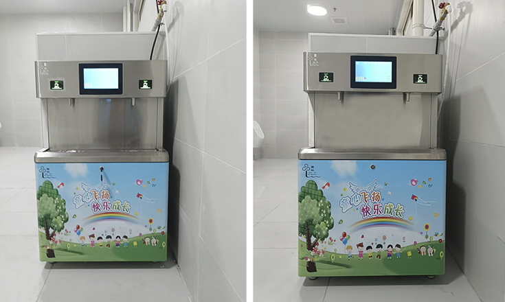 幼儿园直饮机双温出水,圆弧无尖角保护幼儿稚嫩皮肤,可卡通面板让幼儿爱上喝水。教师机搭配刷卡机,刷卡取热水。
